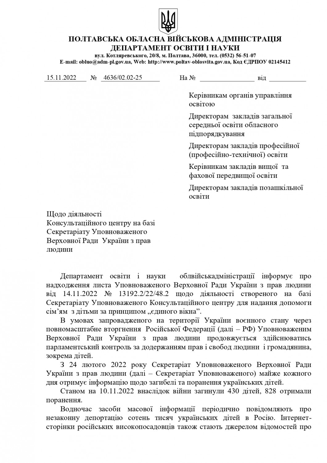 Інформація про діяльність Консультаційного центру Уповноваженого Верховної Ради України з прав людини